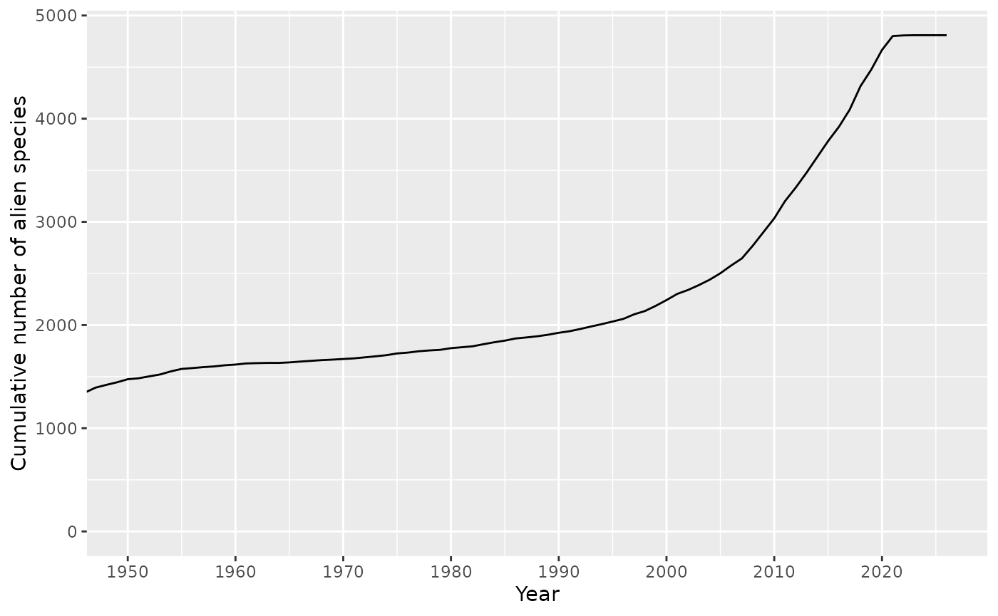 # Plot cumulative number of alien species